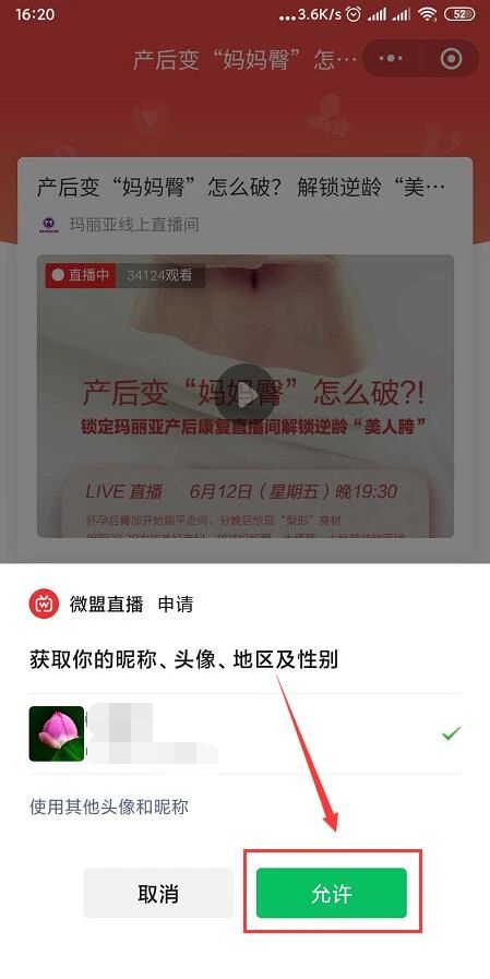 在当晚开播前5分钟会有微信消息提醒您,直接点击链接,进入直播间。